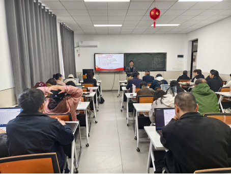 在1408教室召开全院教职工政治理论学习会,学院党委书记黄进涛主持,全体教师参加。