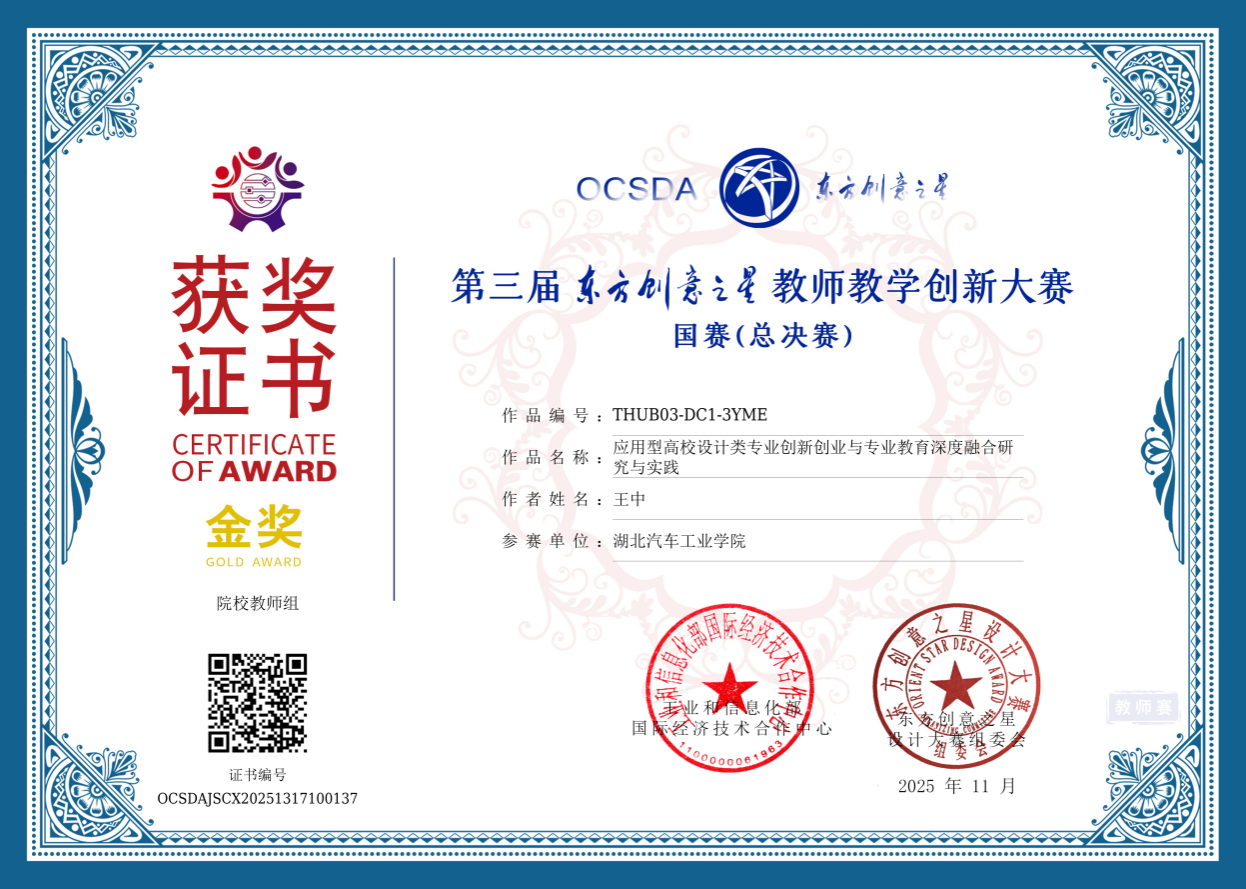 王中老师凭借卓越的教学创新实力与专业素养,在本届大赛中表现优异,其《应用型高校设计类专业创新创业与专业教育深度融合研究与实践》荣获国赛最高奖金奖(此前已在省赛中斩获特金奖),创下我校在该项赛事中首次获奖并取得最好成绩,充分展现了我校教师在教学改革与创新育人方面的雄厚实力。